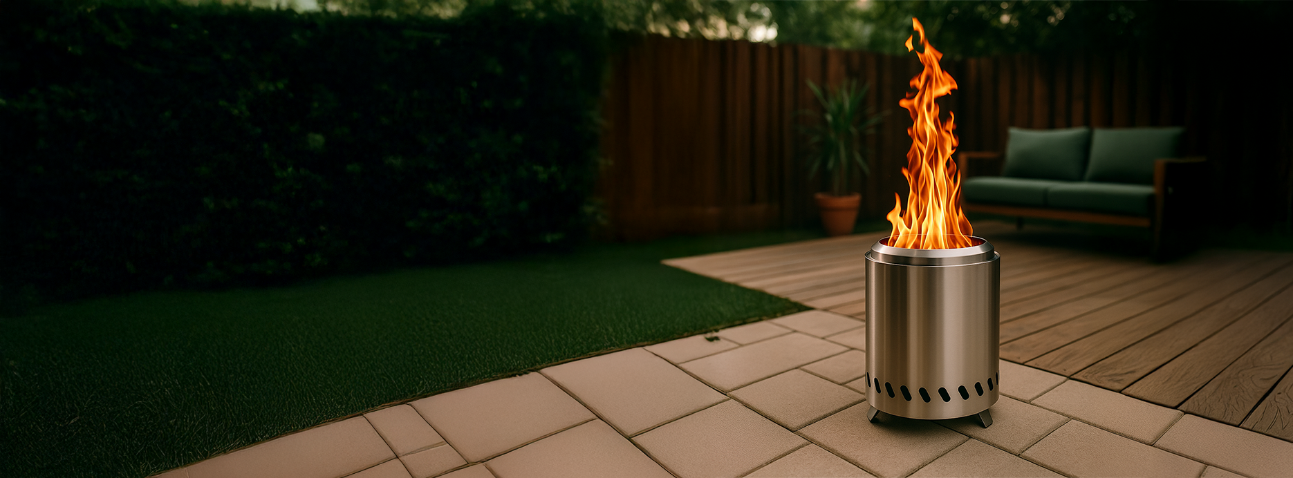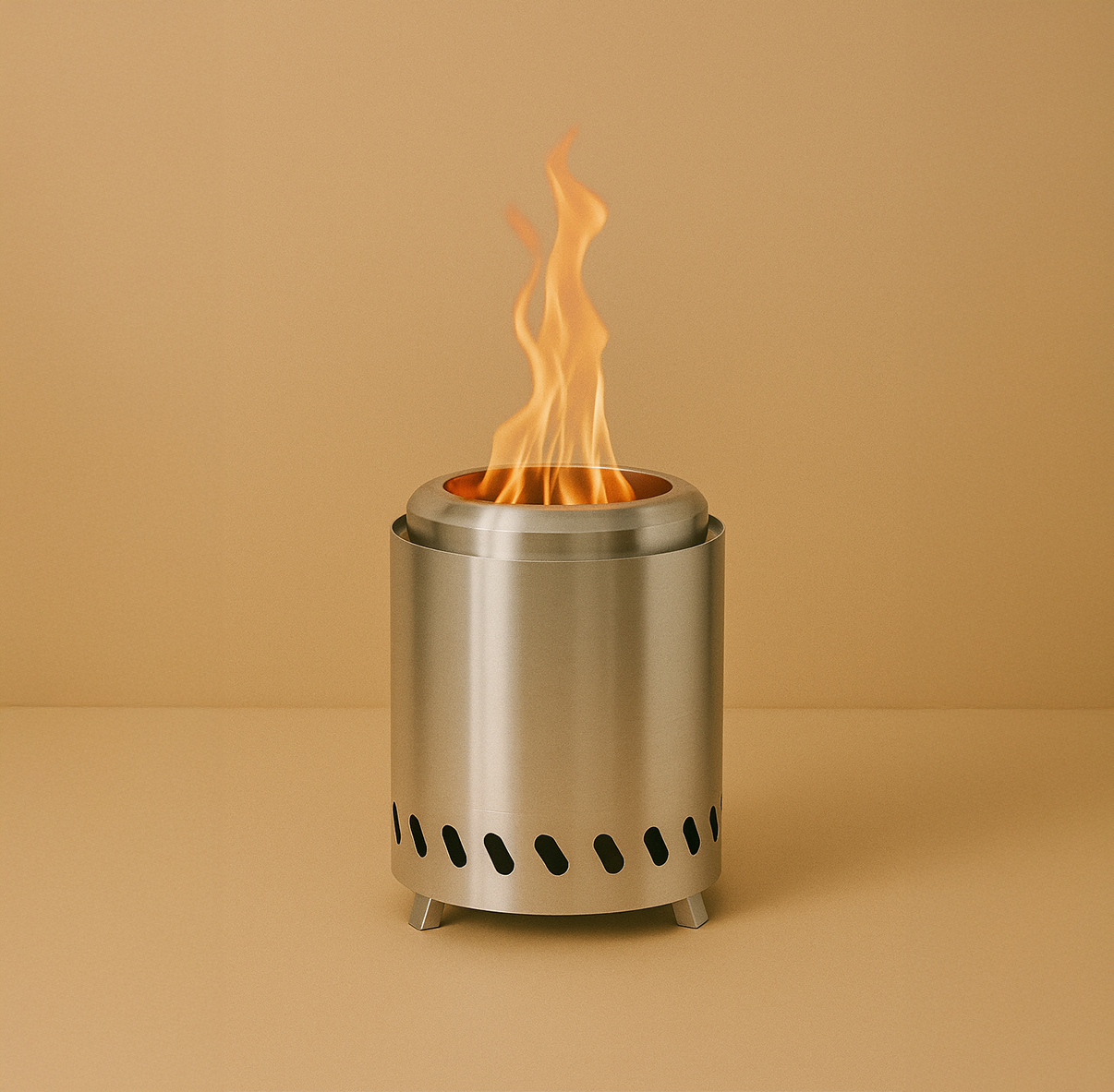 A compact, smokeless stainless-steel cooking stove designed for the outdoors.